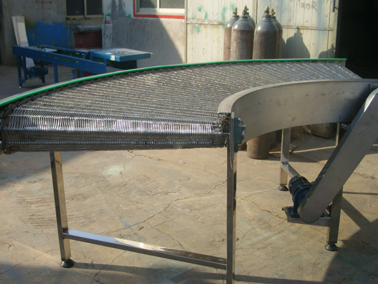 對于大功率長距離轉(zhuǎn)彎網(wǎng)帶輸送機而言,動態(tài)變化非常明顯,很難精確控制,一般需要采用多點驅(qū)動的方式,即在輸送帶的多部位設(shè)置驅(qū)動電機,共同驅(qū)動轉(zhuǎn)彎網(wǎng)帶輸送機。因網(wǎng)帶是粘性材料,網(wǎng)帶具有彈性,網(wǎng)帶張力在傳送過程當(dāng)中具有滯后性,如果使用單點驅(qū)動,驅(qū)動點附近張力非常大,而網(wǎng)帶的尾部卻不能及時獲得驅(qū)動力,即出現(xiàn)前部網(wǎng)帶張力過大,尾部卻沒有受力,嚴重時會出現(xiàn)斷帶現(xiàn)象。所以對于大軸功率、長距離轉(zhuǎn)彎網(wǎng)帶輸送機不能使用單點驅(qū)動,只能采用多點驅(qū)動轉(zhuǎn)彎網(wǎng)帶輸送機的方式,這為大功率長距離轉(zhuǎn)彎網(wǎng)帶輸送機的發(fā)展奠定基礎(chǔ)。