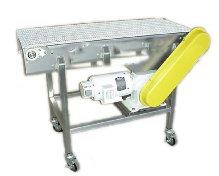 網(wǎng)帶輸送機(jī)主要是以網(wǎng)帶作為承載物料的主體,進(jìn)行各類物料的輸送。網(wǎng)帶輸送機(jī)的組成結(jié)構(gòu)形式可以進(jìn)行水平直線輸送、提升爬坡輸送等形式,網(wǎng)帶上還可以進(jìn)行增設(shè)提升擋板、側(cè)擋板。網(wǎng)帶輸送機(jī)的構(gòu)造是采用模塊式網(wǎng)帶,將輸送帶整個(gè)寬度上的塑料鉸接銷進(jìn)行延伸,并且將注塑成型的網(wǎng)帶進(jìn)行組裝成互鎖單元;因結(jié)構(gòu)的特珠性,從而增加了輸送帶的強(qiáng)度以及可利用性,不論在寬度上還是長(zhǎng)度上都得進(jìn)行無(wú)條件的組接。另外網(wǎng)帶輸送機(jī)擋板與側(cè)板也都可以進(jìn)行鉸接銷互鎖,成為輸送帶整體部件之一。