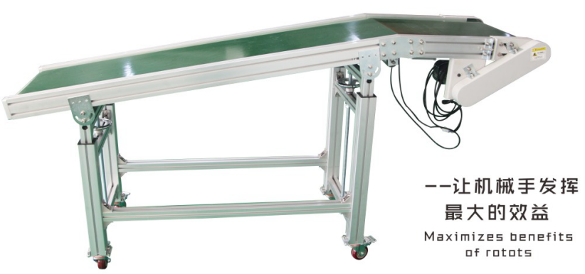 ● 全機由高精度鋁合金結構梁組成,結構超耐久不變形,經久耐用 ● 雙邊高度可調節,調整使用更方便,手輪調整輕松容易 ● 附四個腳輪,移動方便;四支固定腳可以折疊,不用時不占空間 ● 皮帶運轉速度可以調整,方便使用 ● 附機械手鏈接準接頭,與機械手連接方便快速 |